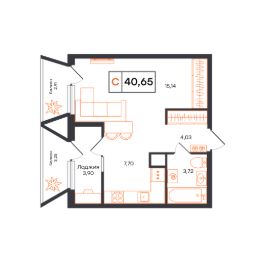 Общая площадь40,65 м²