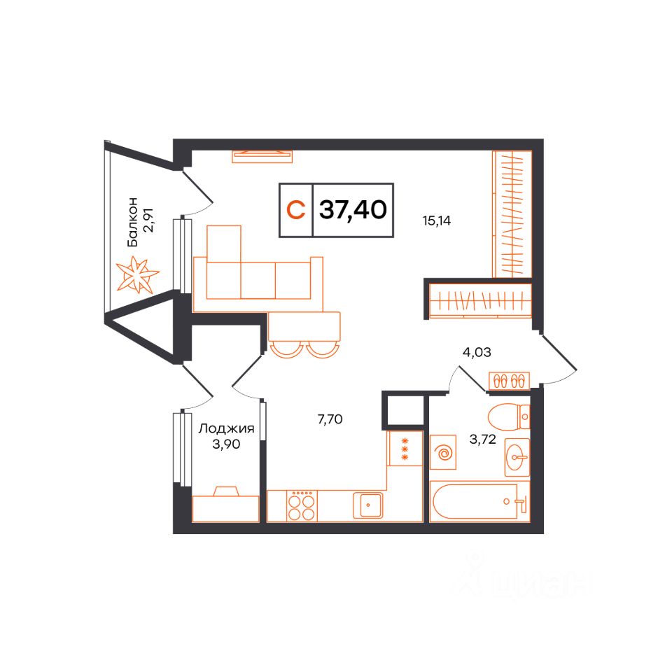 37,4 м²