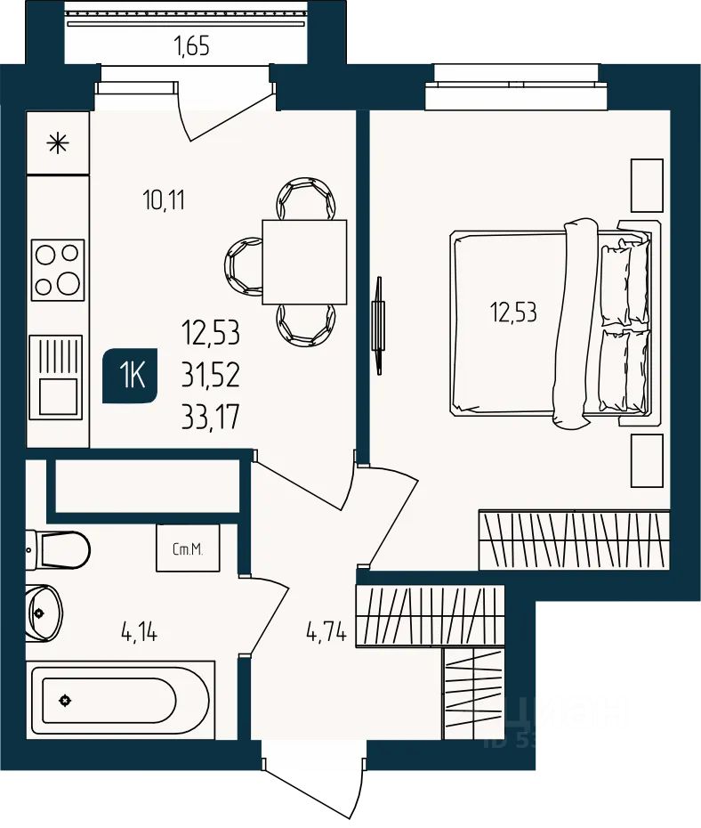 Продаётся 1-комнатная квартира в строящемся доме (Дом Каскад (ГП-2)), срок сдачи: III-кв. 2027, общей площадью 31.52 кв.м., на 14 этаже. Новый жилой комплекс "Квартал Мятный" от Специализированного застройщика "Юпитер" расположен по адресу: г. Тюмень по ул. Кулибина.