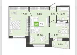 Общая площадь квартиры 58.7кв.м