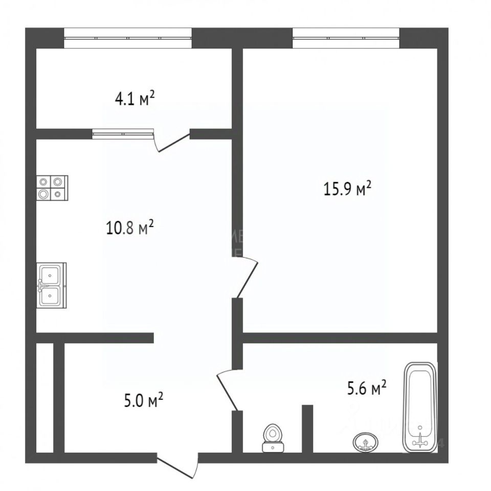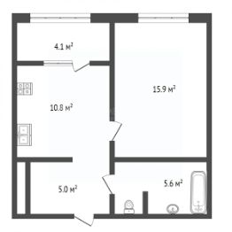 По проекту застройщика была теплая лоджия, но было принято решение увеличить площадь кухни до 15,5 м².