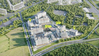 На территории комплекса находятся 2 8-ми этажных паркинга и более 1000 м/м на открытой парковке.