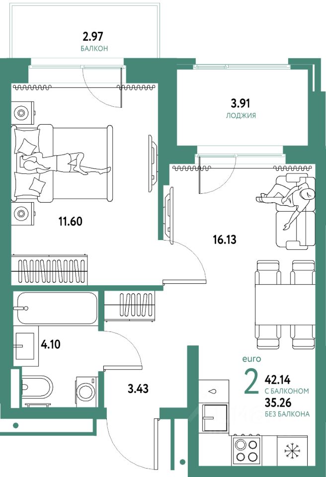 Продаётся 2-комнатная квартира в строящемся доме (Дом "Архитектурный" (ГП-14)), срок сдачи: I-кв. 2026, общей площадью 42.14 кв.м., на 6 этаже. Новый микрорайон "Домашний" от группы компаний "Страна Девелопмент" расположен в Калининском округе Тюмени, в районе аэропорта "Плеханово".