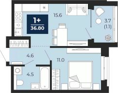 Однокомнатная квартира с предчистовой отделкой в ЖК "Мириады" на 6 этаже. Общая площадь: 39.4 кв.м. Высота потолков 2.7 м.