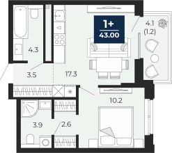 Продается 1-комн. квартира с предчистовой отделкой в ЖК "Мириады" на 14 этаже. Общая площадь: 45.9 кв.м. Высота потолков 2.7 м.