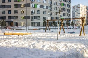 Закрытый двор без машин с современными детскими площадками — это идеальное пространство для игр и активного времяпрепровождения ваших детей.