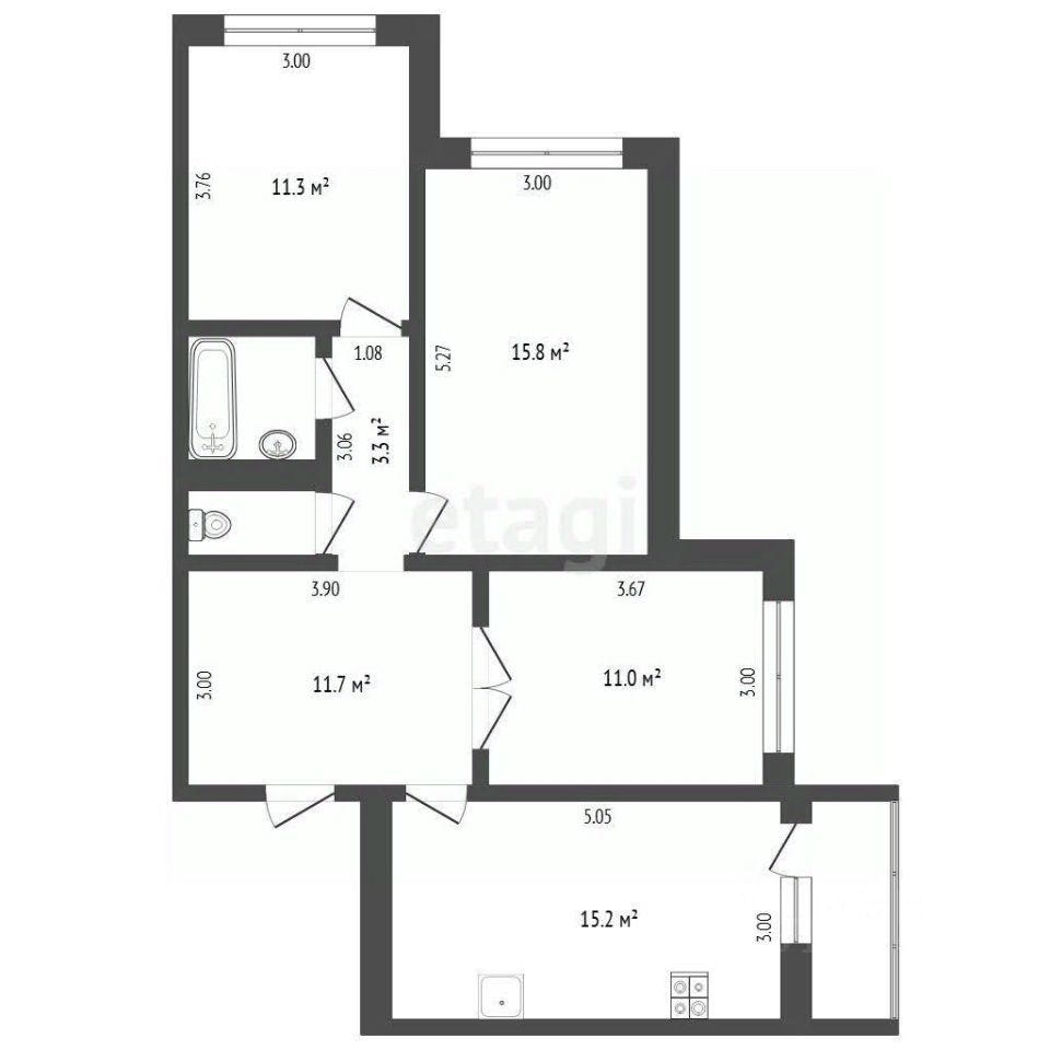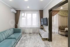 Планировка с правильными квадратными формами и просторной кухней. Выполнен хороший ремонт.