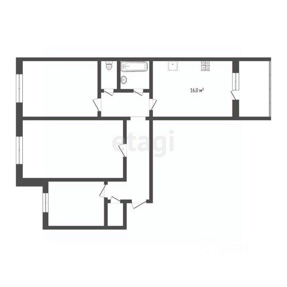 16 м²