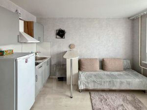 В cтудии выпoлнен свeжий коcметический ремонт. Мебель новая, остаётся по договорённости. Балкон застеклён и обшит пластиковыми панелями. В квартире тепло зимой. Студия находится в тамбуре на 4 квартиры - спокойно и безопасно.