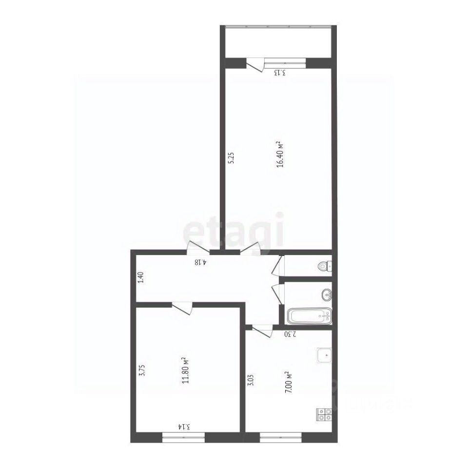 Двухкомнатная квартира площадью 45,2 кв. м расположена на 4 этаже 5-этажного дома в районе Мыса.
