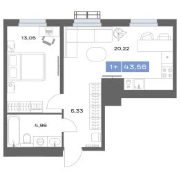 Продаётся 1-комнатная квартира в строящемся доме (Дом 12), срок сдачи: II-кв. 2027, общей площадью 43.56 кв.м., на 15 этаже. Медный - дом в Заречном районе Тюмени.
