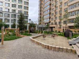 Дом находится в хорошем подъезде с колясочной и велосипедной ячейкой. Сквозной выход во двор и на парковку обеспечивает удобство и безопасность. Придомовая территория ухоженная: зеленый двор с зонами для отдыха взрослых и современными детскими площадками. Дом закрытого типа с внутренней площадкой — безопасно для детей и без машин.