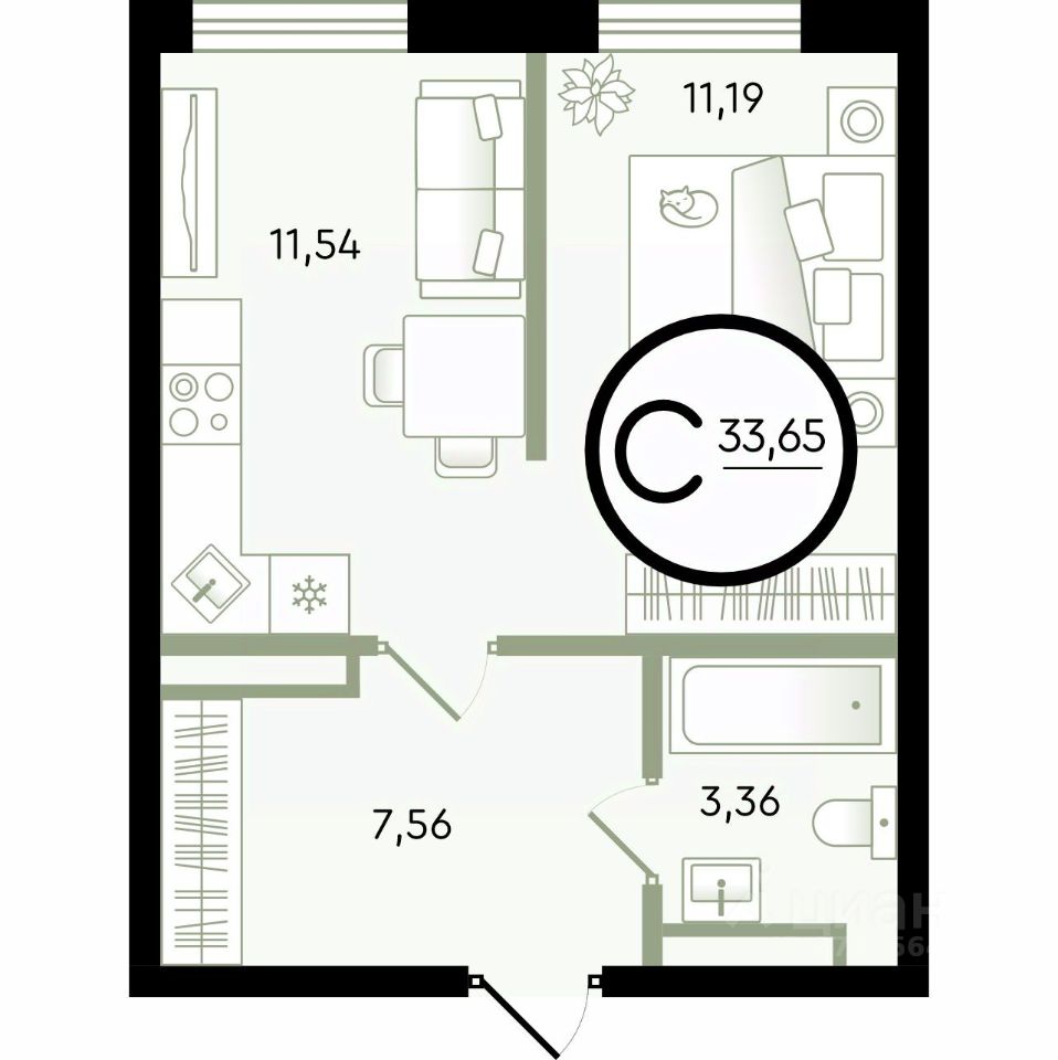 33,65 м²