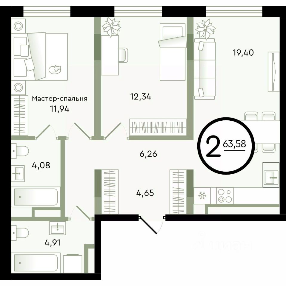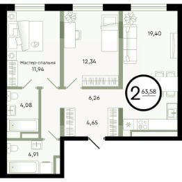 Общая площадь63,58 м²