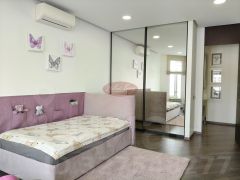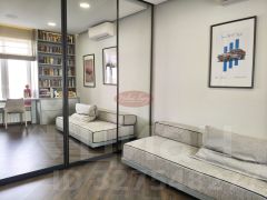 В квартире отличное зонирование на гостивую и приватную-спальную часть. Три спальни, зал и кухня, 2 санузла, гардеробная и застекленная лоджия.