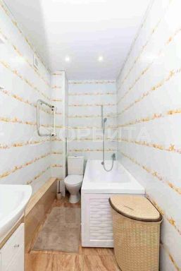 Квартира выполнена в современном дизайне с использованием светлых тонов, что создает атмосферу уюта и простора. Натяжные потолки добавляют изысканности, а совмещенный санузел, облицованный кафелем, с качественным санфаянсом станет настоящим удовольствием для вас и вашей семьи.