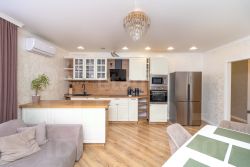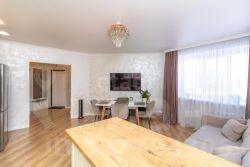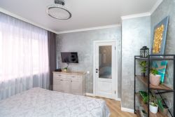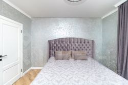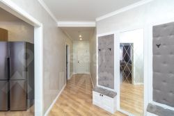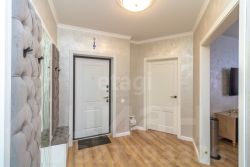Квартира площадью 68 кв.м расположена на втором этаже 12-этажного кирпичного дома 2007 года постройки, в подъезде с двумя лифтами. Пространство организовано рационально: просторная кухня-гостиная 24 кв.м с современным гарнитуром и островом, а также изолированная спальня с собственной гардеробной, что освобождает жилую площадь от громоздких шкафов. В квартире выполнен качественный ремонт для собственного проживания: на стенах практичная венецианская штукатурка, на полу уложен ламинат высокого класса без порогов, установлены натяжные потолки и надежная входная дверь.