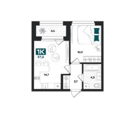 Продаётся 1-комнатная квартира в строящемся доме (ГП-1 (Евгения Войнова, 8)), срок сдачи: IV-кв. 2027, общей площадью 37.2 кв.м., на 14 этаже. Новый жилой комплекс от Специализированного застройщика "ИНКО" расположен по адресу: г. Тюмень по ул. Евгения Войнова.