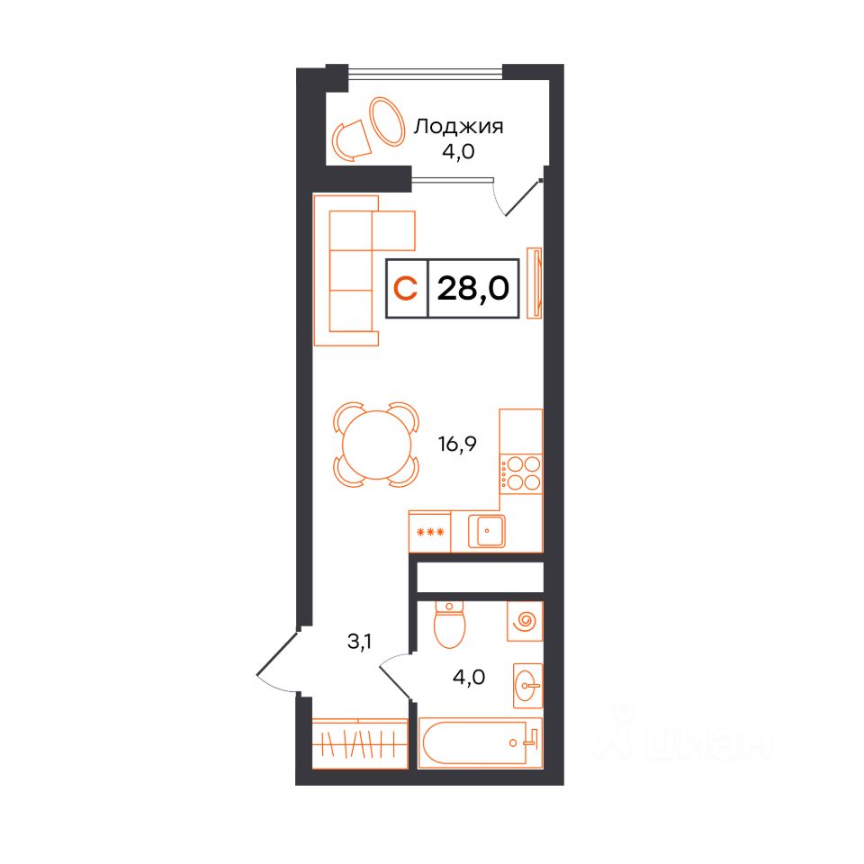 Уютная студия с эргономичной планировкой, сдается в предчистовой отделке в жилом комплексе УНО. Умный квартал.