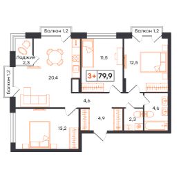 3-комн. квартира с продуманным пространством, сдается в предчистовой отделке в жилом комплексе УНО. Умный квартал.