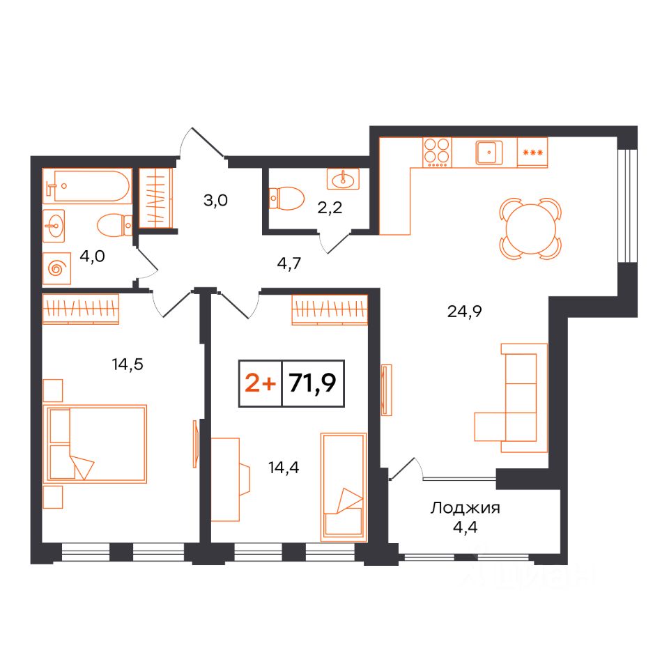 71,9 м²