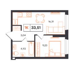 Общая площадь33,51 м²