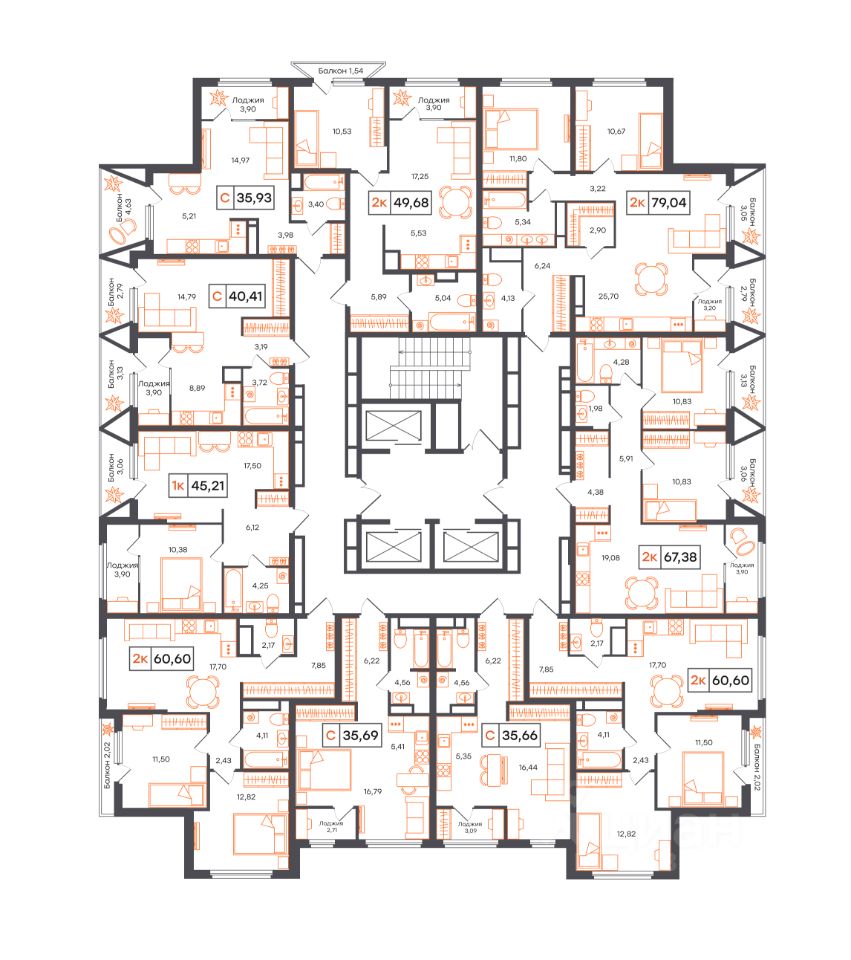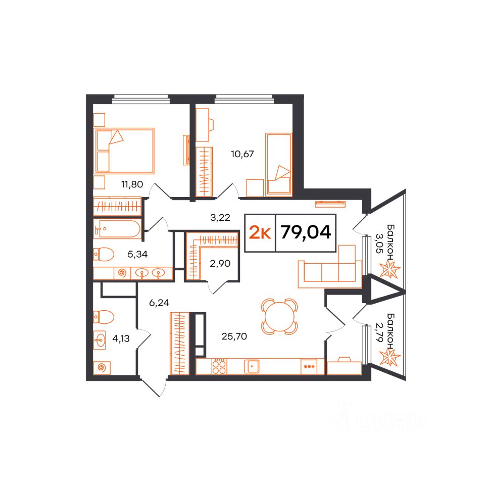 Просторная 2-комн. квартира с функциональной планировкой, сдается в предчистовой отделке в жилом комплексе Отличие.Дом сдан.