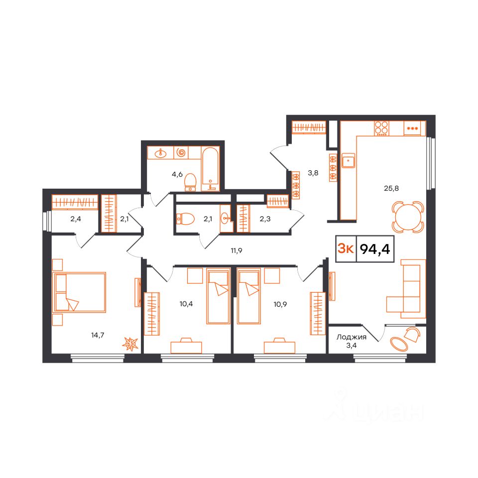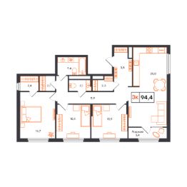 3-комн. квартира с продуманным пространством, сдается в предчистовой отделке в жилом комплексе Отличие.