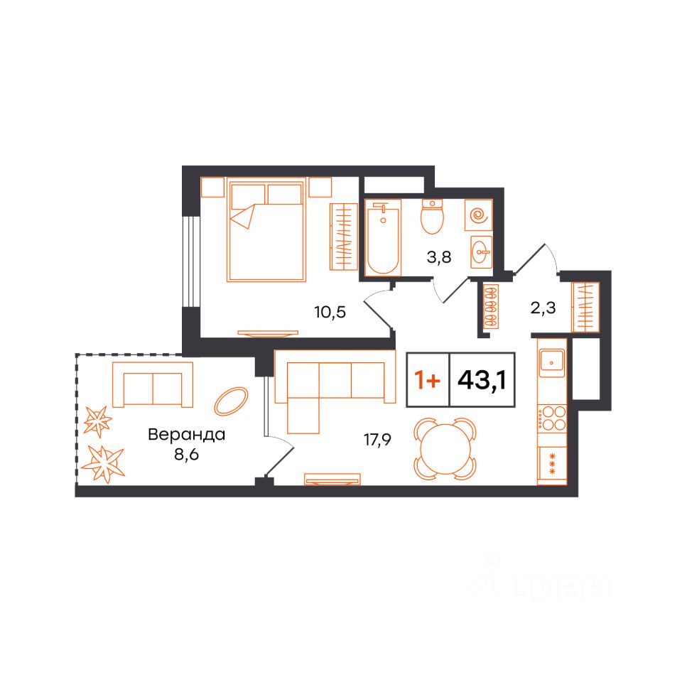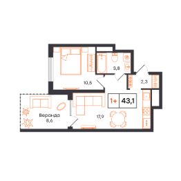 Общая площадь43,1 м²