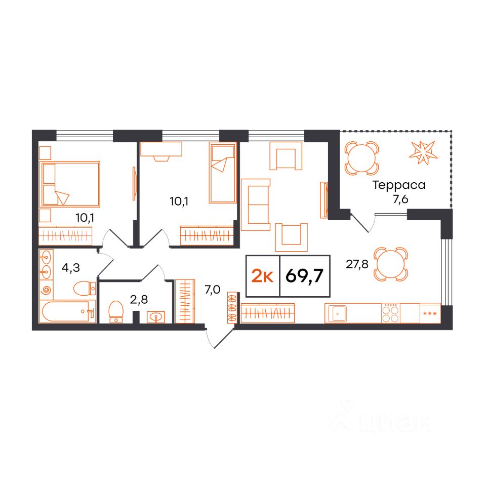 Общая площадь69,7 м²