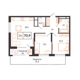 Общая площадь70,9 м²