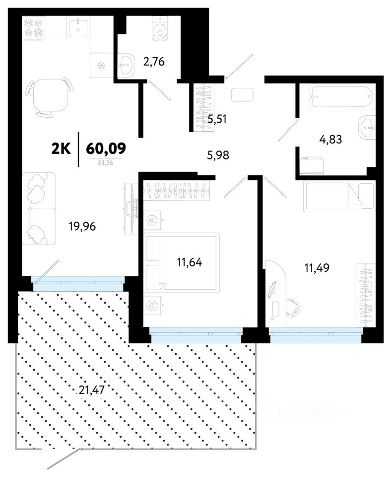 Общая площадь60,09 м²