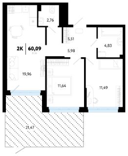 Продается 2-комн. квартира, 60,09 м²