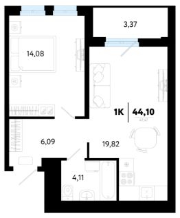 Общая площадь44,1 м²