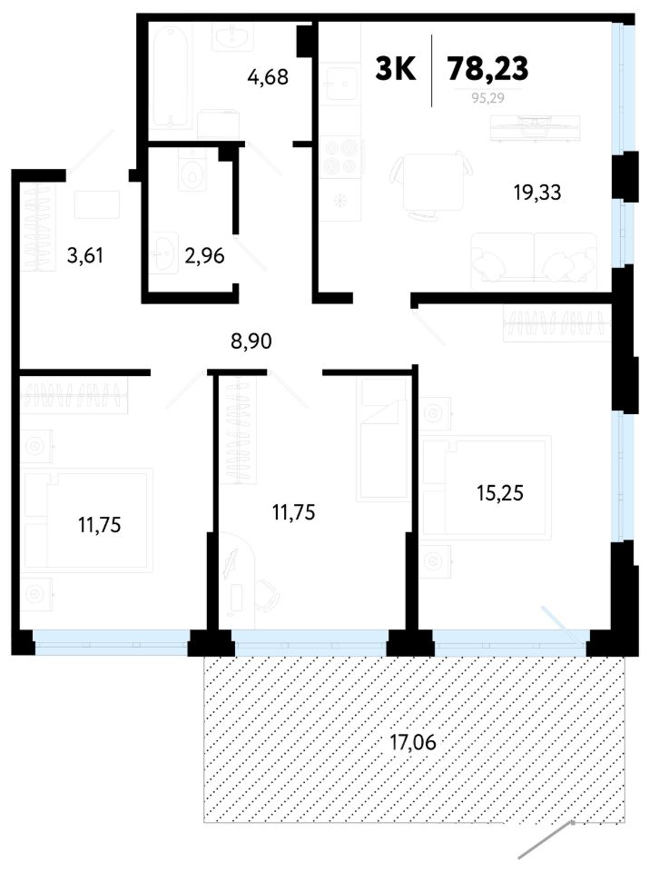 Общая площадь78,23 м²