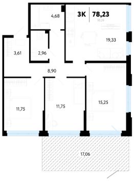 Продается 3-комн. квартира, 78,23 м²