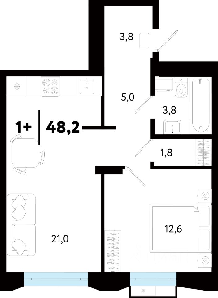 Общая площадь48,22 м²