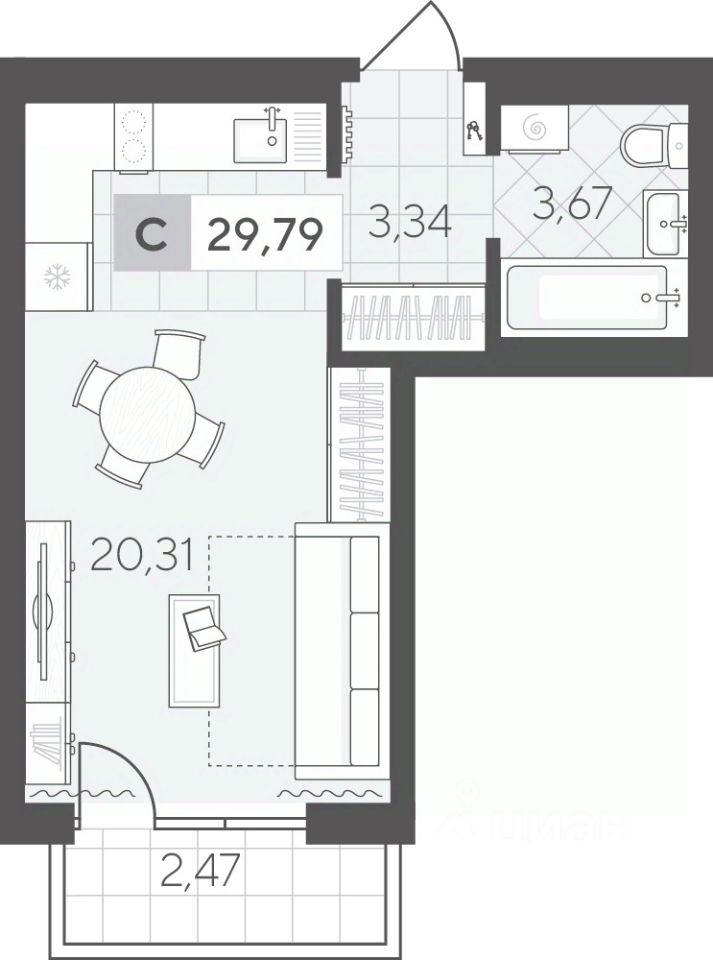 Продаётся студия в строящемся доме (3.1 (Николая Глебова, 2к1)), срок сдачи: IV-кв. 2026, общей площадью 29.79 кв.м., на 2 этаже. Новый жилой комплекс "Скандиа. Квартал в Комарово Парк" от застройщика "Скандиа" расположен в Калининском округе Тюмени в районе ул. Николая Глебова.