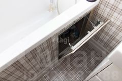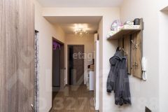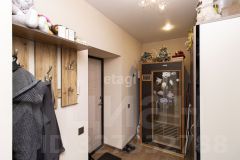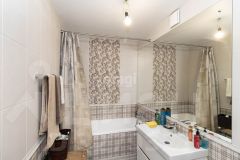 Санузел в квартире совмещенный и просторный. Стены выложены кафелем, а большое зеркало придает ему особый шарм. Также в прихожей есть место под гардеробную и хозяйственный шкаф, что обеспечит вам дополнительное пространство для хранения вещей.