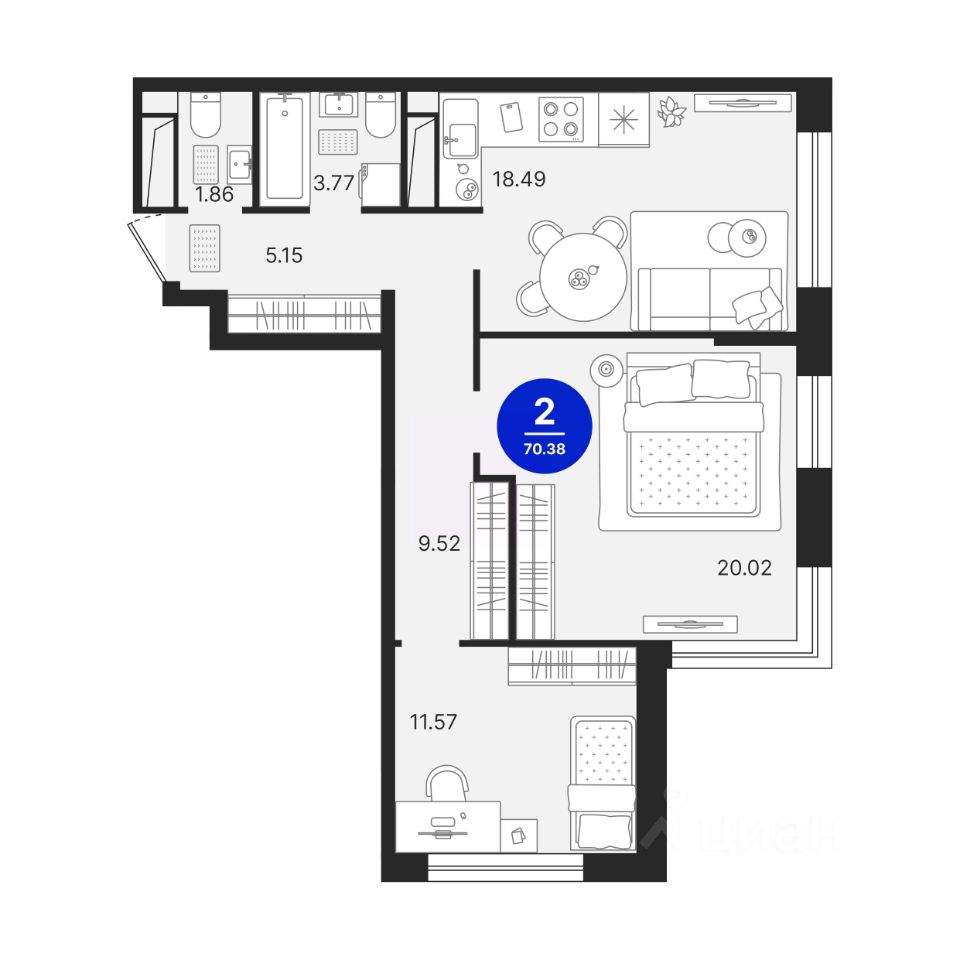 70,38 м²