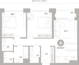 Продаются 2-комнатные апартаменты в сданном доме (Б2), срок сдачи: IV-кв. 2021, общей площадью 88.4 кв.м., на 4 этаже. Квартал "1А Первомайская" расположен на пересечении трех улиц: Первомайская, Советская и Сакко.