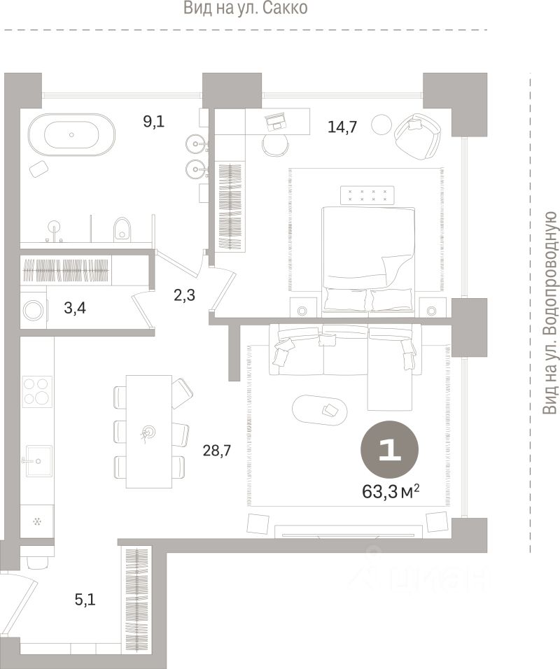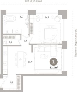 Продаются 1-комнатные апартаменты в сданном доме (Б2), срок сдачи: IV-кв. 2021, общей площадью 63.3 кв.м., на 4 этаже. Квартал "1А Первомайская" расположен на пересечении трех улиц: Первомайская, Советская и Сакко.