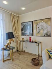 Внутреннее пространство выполнено с любовью к деталям: современный дизайн, уютная атмосфера и комфортная планировка. В квартире вас ждут просторная кухня, светлая гостиная, уютная спальня и два современных санузла, а также широкий коридор. Кирпичный дом, построенный в 2013 году, гарантирует надежность и долговечность.