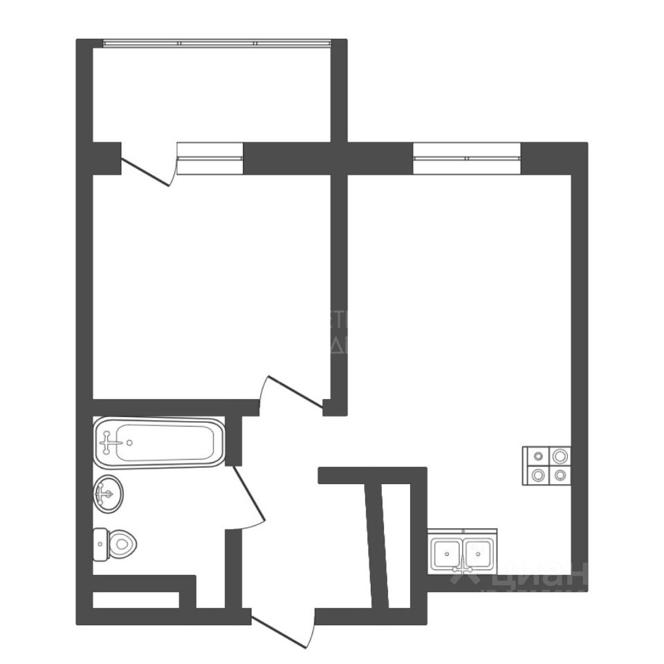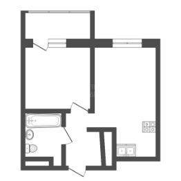 На полу ламинат и плинтуса, на стенах обои под покраску и окрашены, потолок натяжной, матовый, с точечными светильниками. Установлены розетки, выключатели, радиаторы с регулятором тепла, межкомнатные двери. Выведены все необходимые коммуникации для установки кухонной техники и сантехники.