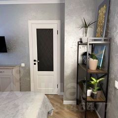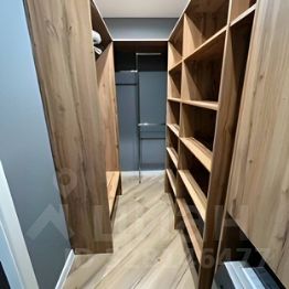 Спальня с гардеробной комнатой. Пол в один уровень. По всей квартире ламинат высокого класса, без порогов. Качественная входная сейф-дверь. В гардеробной- обои под покраску. Потолки натяжные.