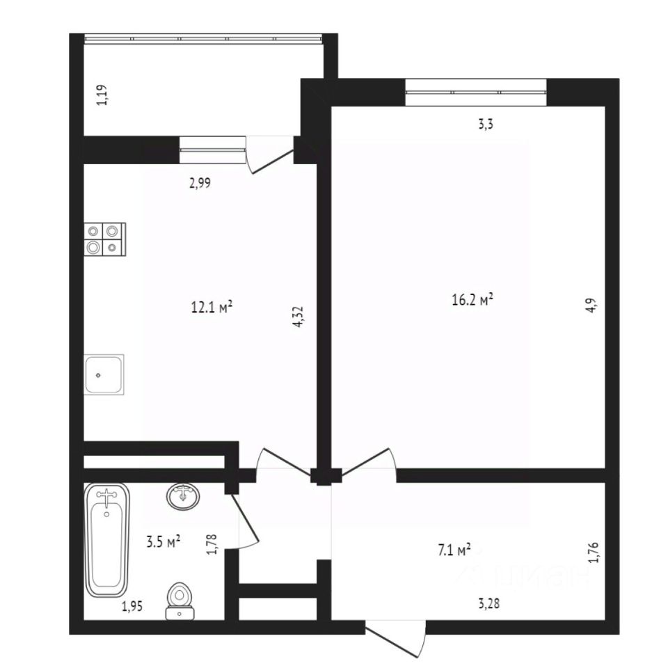 Квартира 36,6 м² лоджия в ЖК "Гармония"