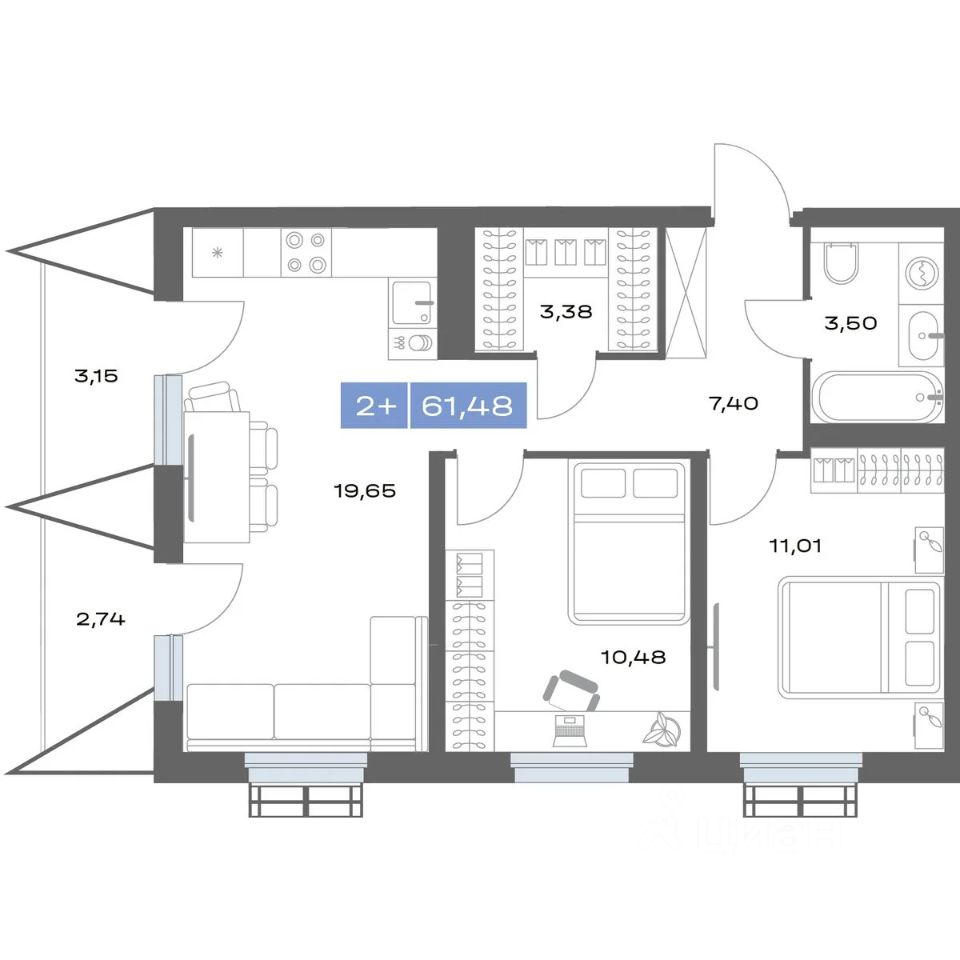 Продаётся 2-комнатная квартира в строящемся доме (Дом 12), срок сдачи: II-кв. 2027, общей площадью 61.48 кв.м., на 5 этаже. Медный - дом в Заречном районе Тюмени.