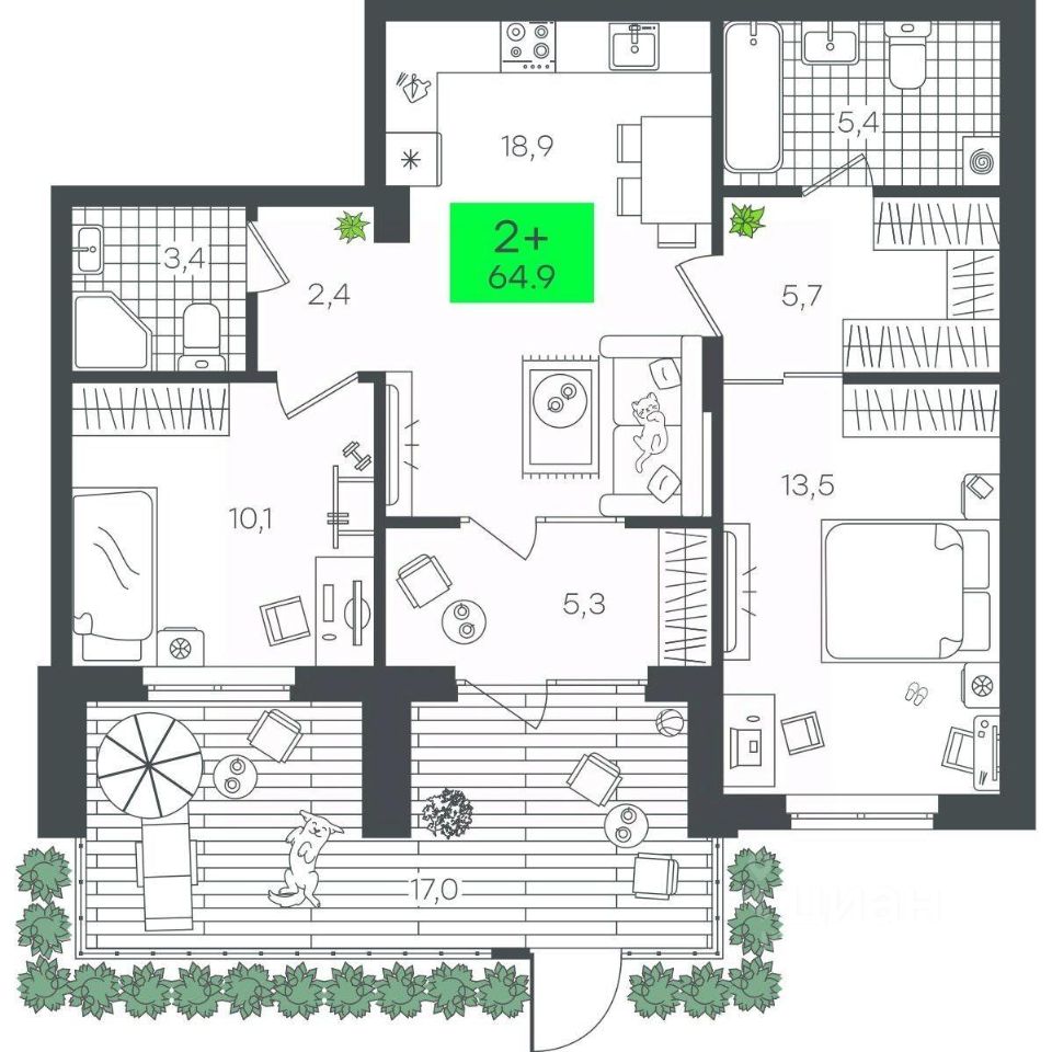 Продаётся 2-комнатная квартира в строящемся доме (Д5.2 (Малкова, 5)), срок сдачи: III-кв. 2026, общей площадью 82.05 кв.м., на 1 этаже. Компания 4D приступила к строительству нового жилого комплекса "Гранд квартал". Новый ЖК находится в зеленой зоне Калининского района, южнее микрорайона Тюменская слобода.