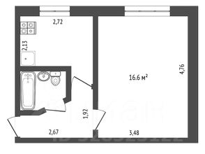 Планировка классическая - кухня, гостинная, санузел совмещенный и прихожая.