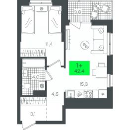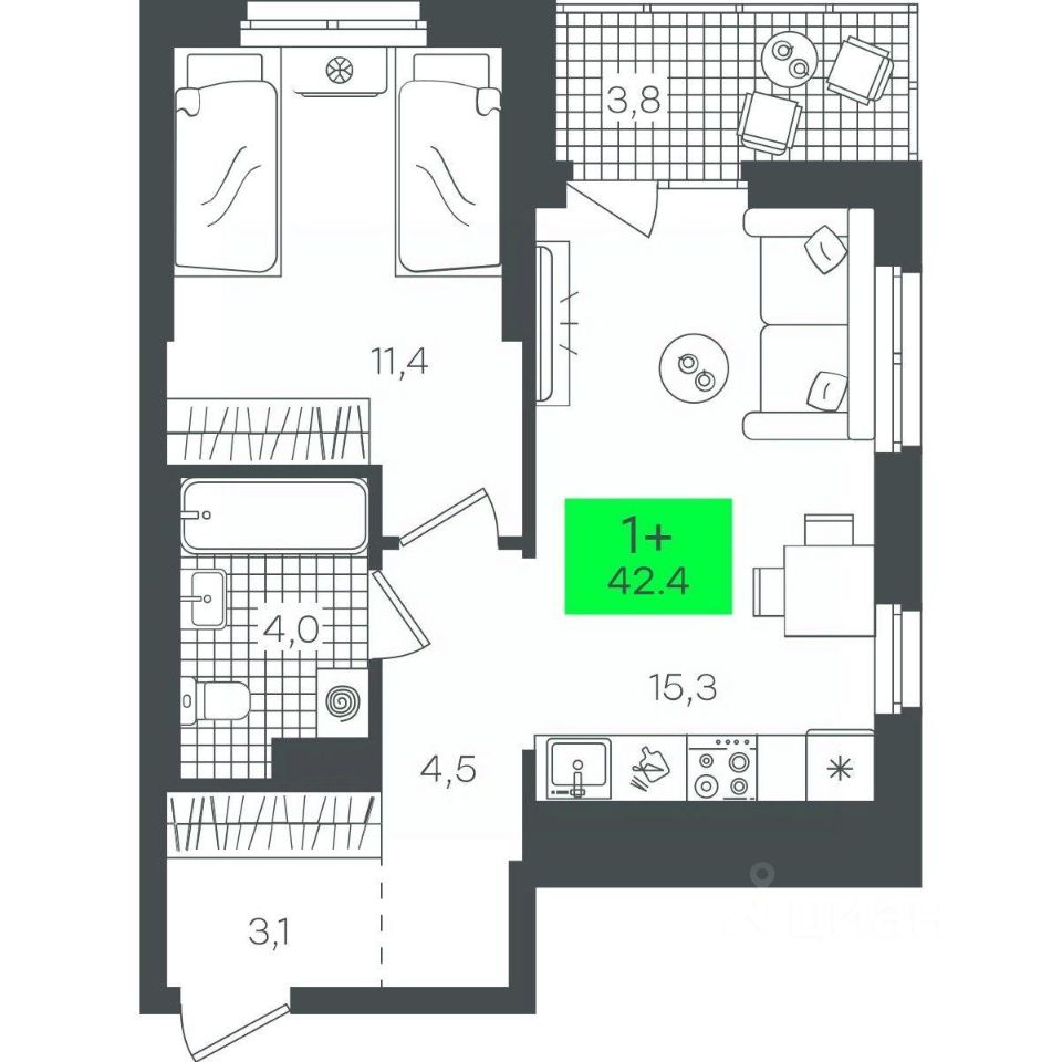 Продаётся 1-комнатная квартира в строящемся доме (3-В6.1 (Малкова, 15)), срок сдачи: III-кв. 2026, общей площадью 42.4 кв.м., на 19 этаже. Компания 4D приступила к строительству нового жилого комплекса "Гранд квартал". Новый ЖК находится в зеленой зоне Калининского района, южнее микрорайона Тюменская слобода.
